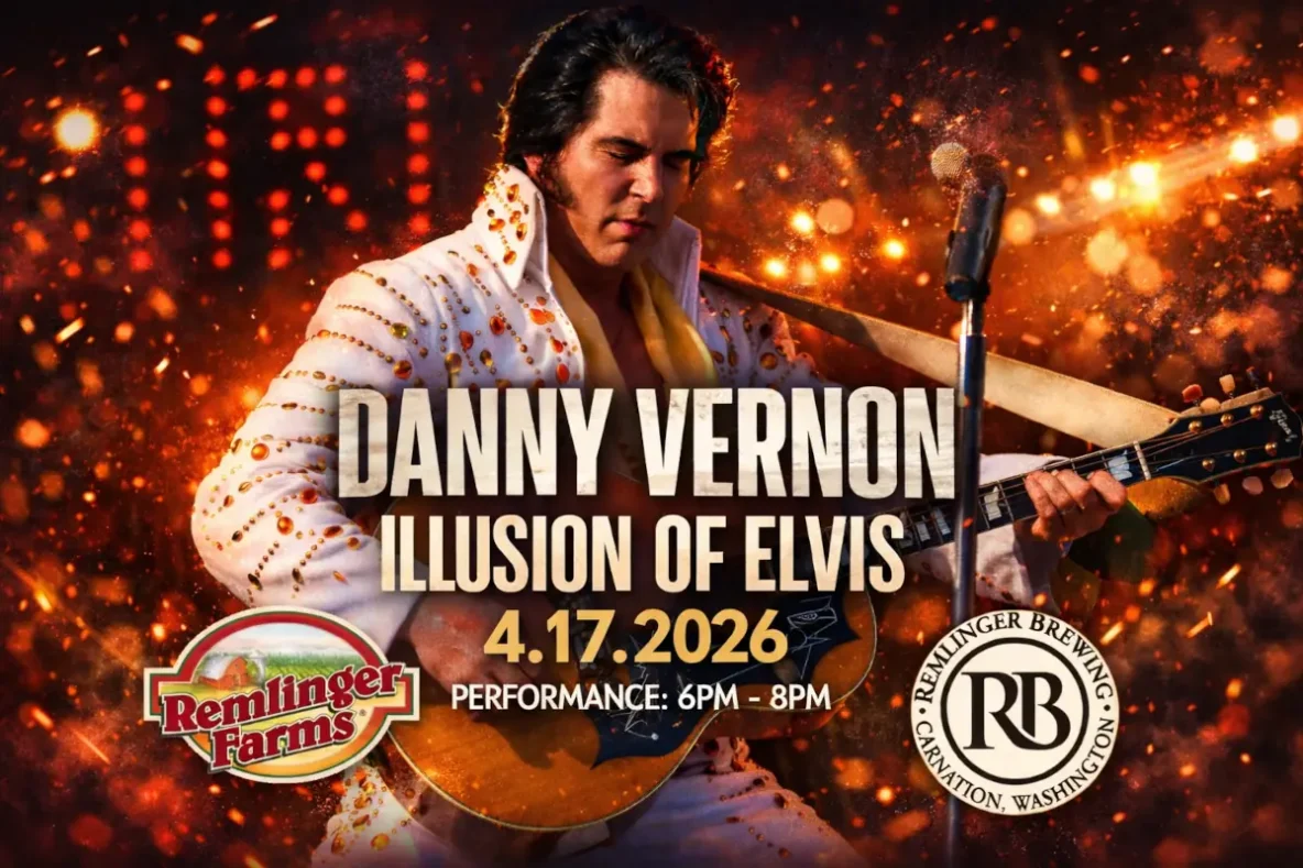 🎸🔥Friday night is about to leave the building in excellent style. Join us at Remlinger Farms in Carnation, WA for a live brewery stage concert with Danny Vernon, an award-winning Elvis tribute artist known for his high-energy performances, crowd connection, and spot-on tribute to every era of Elvis.