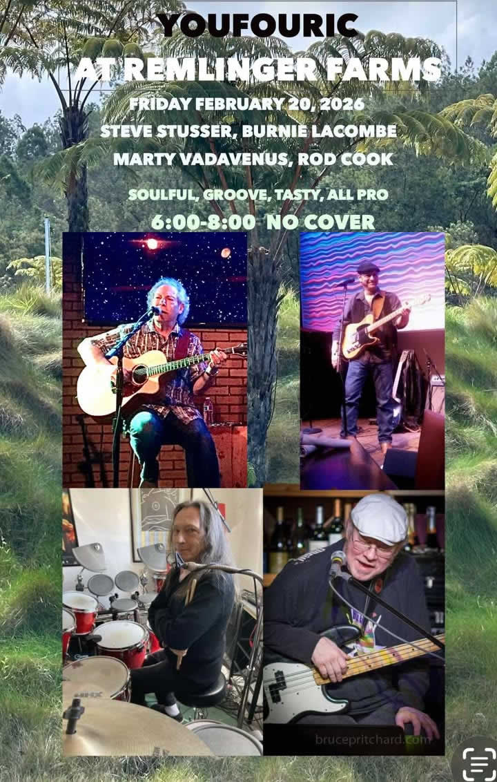 🎶 Immerse yourself in the harmonious blend of classic Americana, pop, country, folk, and rock as the YouFouric Quartet takes the stage. 🌈 Let their captivating tunes weave a tapestry of warmth and joy, transporting you to a place where music is the language of the soul. 🌌